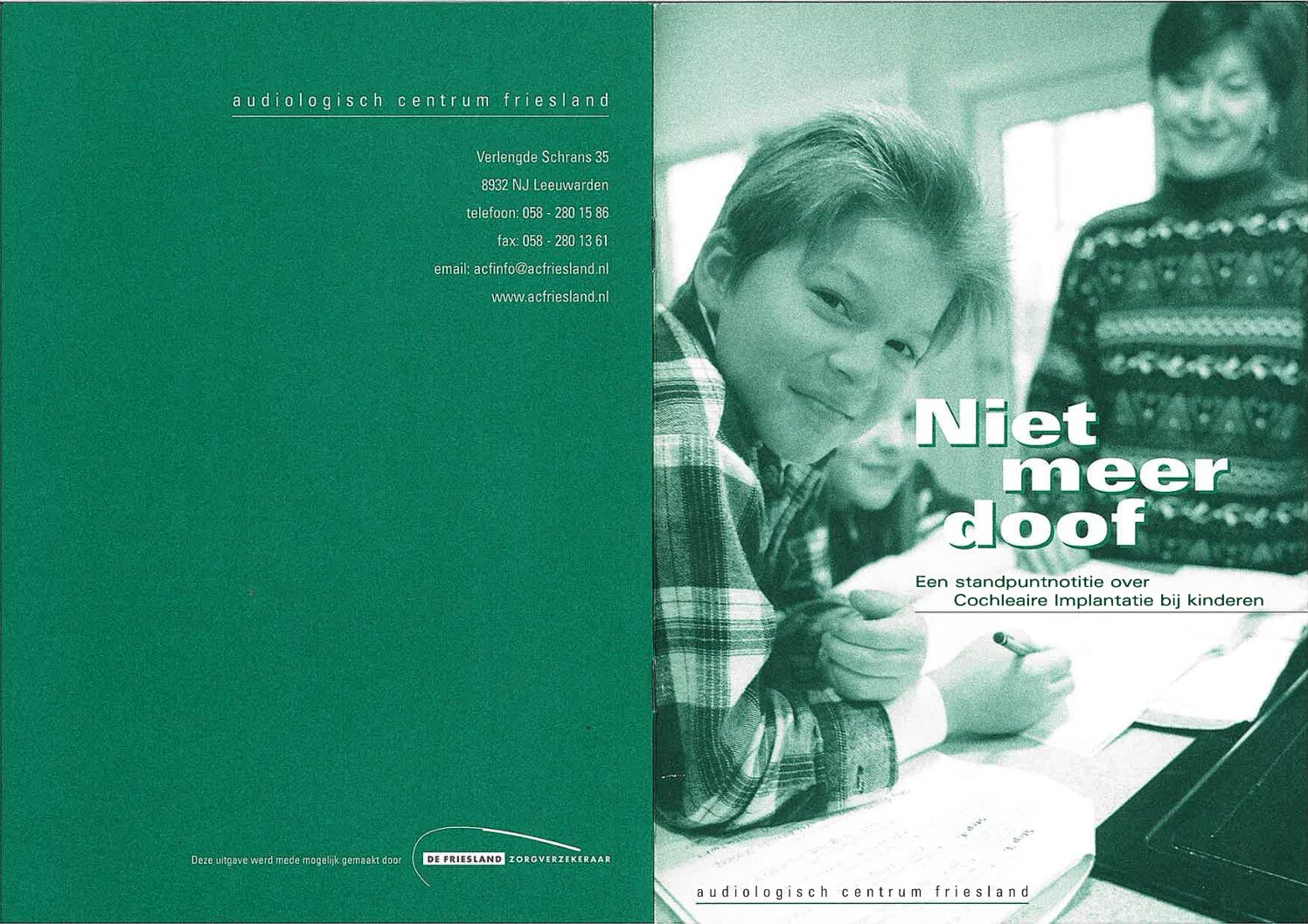 inclusief Pentoscript (Een samenvoeging van doelstellingen, voorgenomen beleid en wensen van het Audiologisch Samenwerkingsverband Pento, te weten de vier samenwerkende Audiologische Centra Amersfoort, Zwolle, Twente en Friesland en de Stichting Gezinsbegeleiding Midden-Oost Nederland).